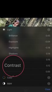 B7: Chọn contrast, sau đó kéo để tăng độ tương phản theo ý thích